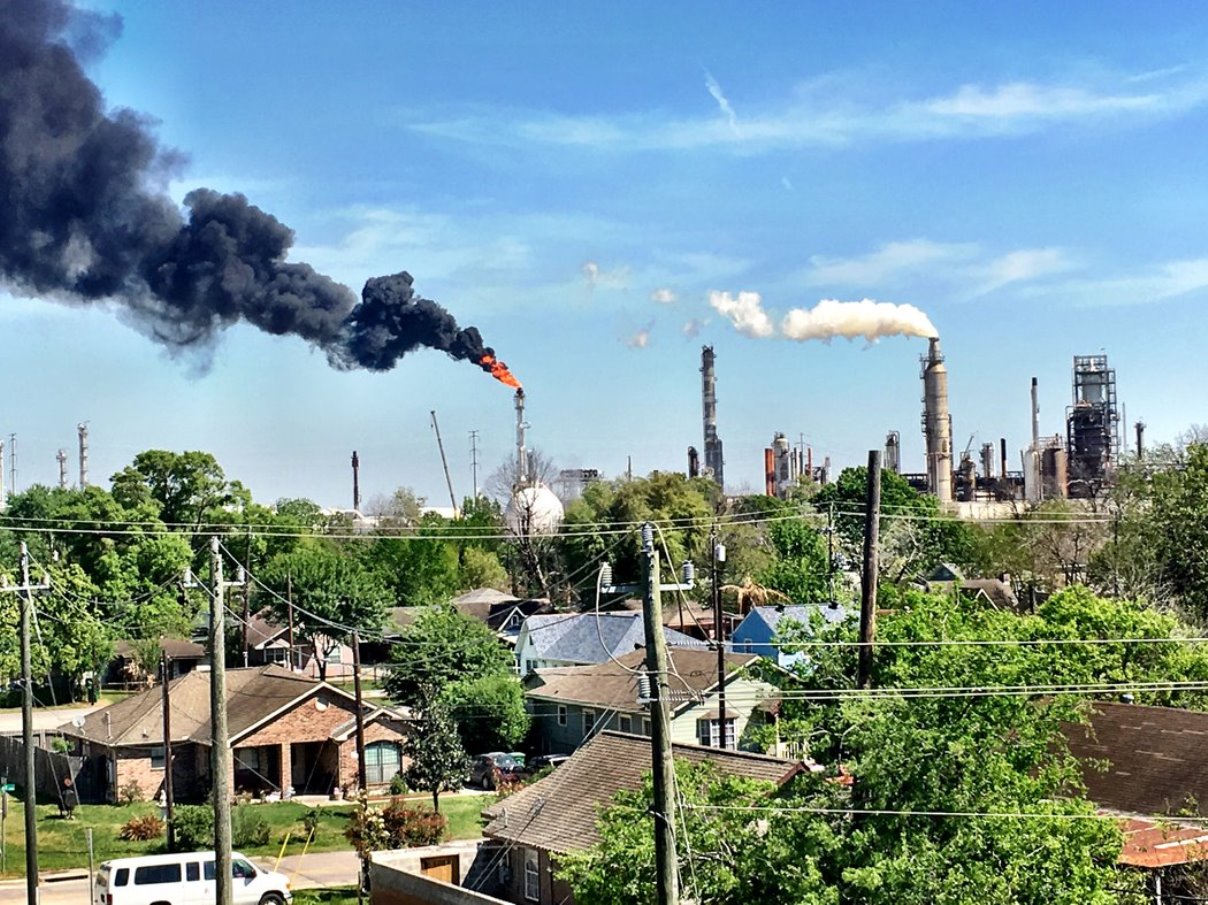 A flare from the Valero refinery on March 22, 2018, overlooking the community of Manchester in Houston, Texas.