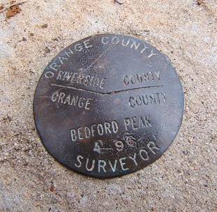 | 2013 February 9, Saturday. O: Bedford Peak. Jeff Johnson, Laura Rainey.Bedford Peak is in the central Santa Ana Mountains, 3800 ft. elevation. Our very moderately-paced hike will be 7 mi. RT, 2000 foot gain and loss, on old fire road now closed to traffic. From the ridges, views north to the San Gabriel, San Bernardino, and San Jacinto mountain ranges, often under winter snow in February. Our route is low enough that it is rarely snowy. Geological information about this historic mining district from Laura Rainey. Possible stream crossing (on road) to reach the trailhead. Meet 9 AM at the end of Silverado Canyon Road, at the locked gate. If the gate is open, you can drive 200 yards further, cross the stream, trailhead parking just beyond on the left, Adventure Pass required. Bring water, lunch, layers for weather possibilities, trail footwear. You must contact Jeff before the outing – weather conditions may lead to last minute diversion to an alternate trailhead, though that has not actually happened for several years. Carpooling possible from Long Beach rideshare. Questions? Call Jeff, 562-434-8473. |