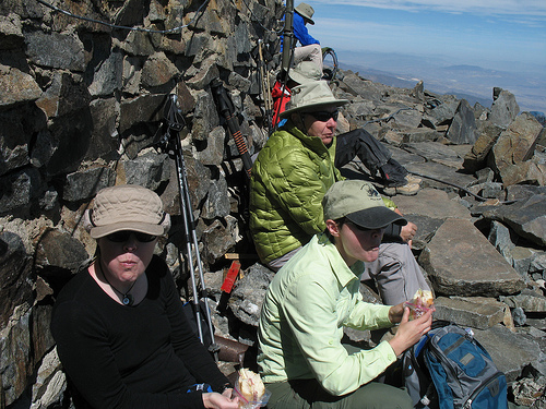 | 2008 Mar 15, Sat. O: Round Top, Granite Mt. Nancy B., S.K. Pine trees, clear mountain air and a stunning 360 degree view at the top await you on this Peak Baggers’ Special. This is a moderately strenuous 13 mile (roundtrip) hike that will take most of the day. Elevation gain is approximately 1600’. Much of the hike is on a gradually climbing fire road – that’s the moderate part – but you will feel the elevation as we get to Round Top Peak at 6,316’. The strenuous part is heading up Granite Mountain – 20 minutes on a steep, barely-there trail that tops out at over 6600’. Meet at 8 a.m. sharp at the La Canada rideshare point. Bring a big lunch, 3 liters of water, sunscreen and lots of layers for unpredictable March weather. Adventure Pass required to park at trail head. Heavy rain or snow cancels. |