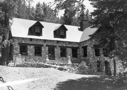 Early picture of the lodge. Note placement of lower door and no flag pole.