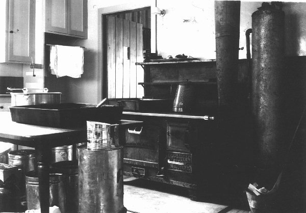 | Kitchen 1937. Look closely at the preparation table, it is still in use after over 66 years. | Dining room 1937. In the foreground is a table that is still in the dining room. |