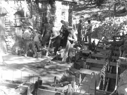 Construction of the scullery, family rooms and women's rest room, circa 1951.