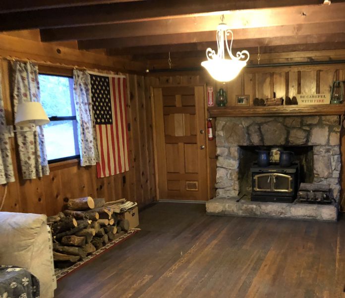 - Facilities: Two rustic living/dining rooms, two dormitory lofts (separate men and women on open weekends) with 10 beds each. Fully equipped kitchen with cookware, dishes, and utensils. Furnish your own food, sleeping bag or bedding, flashlight, personal items bath towels, and hand towels. In cold winter months please contribute firewood for the pot-belly stove and fireplace.