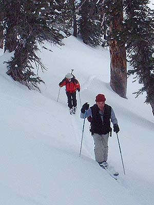 We don't need no stinkin trail! Chris Bea and Jay Greening breakin trail up the standard route to the Hut. It's not often you can leave your truck with your skis on your feet.