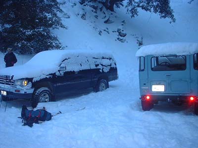 Back at the 4x4's As you can see, skiing back to the car is a reality. For some us, much more than others. Gracias, San Antonio |