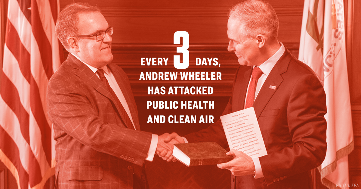 In fact, we did the math: Wheeler has acted against protecting public health, clean air, and a safe climate, on average, once every three days. That means every three days he rolls back a new climate safeguard, ignores and contradicts science, meets with big polluters, limits the EPA’s ability to protect us from pollution, or gives in to corporate polluters’ demands. Every three days, our public health is put more at risk.
