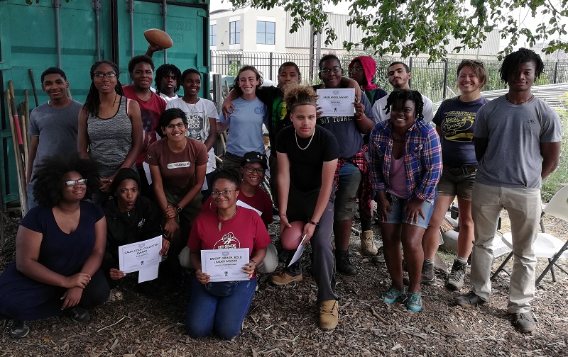 Around 20 students ages 13–18 from several Detroit high schools took part in buildOn’s 2018 summer camping program via Detroit Outdoors. Camping at Scout Hollow followed a week of environmental education with Green Living Science. Once at the park, the group performed such tasks as clearing brush and installing a free library before camping out overnight.