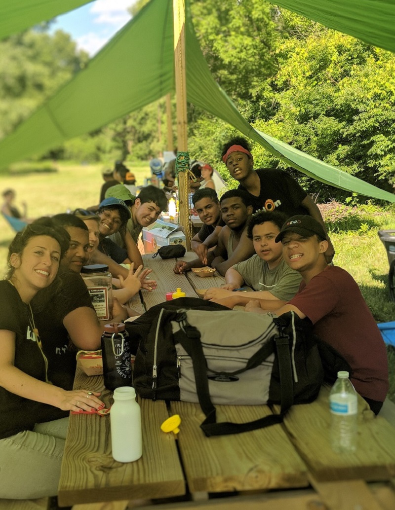 Detroit buildOn group catching some shade at Scout Hollow. Photo courtesy of Detroit buildOn.