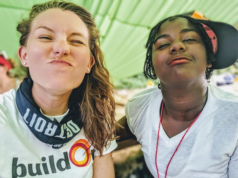 Catie Bargerstock and 10th grader Nariah Harris of Detroit buildOn at Scout Hollow. Photo courtesy of Detroit buildOn.