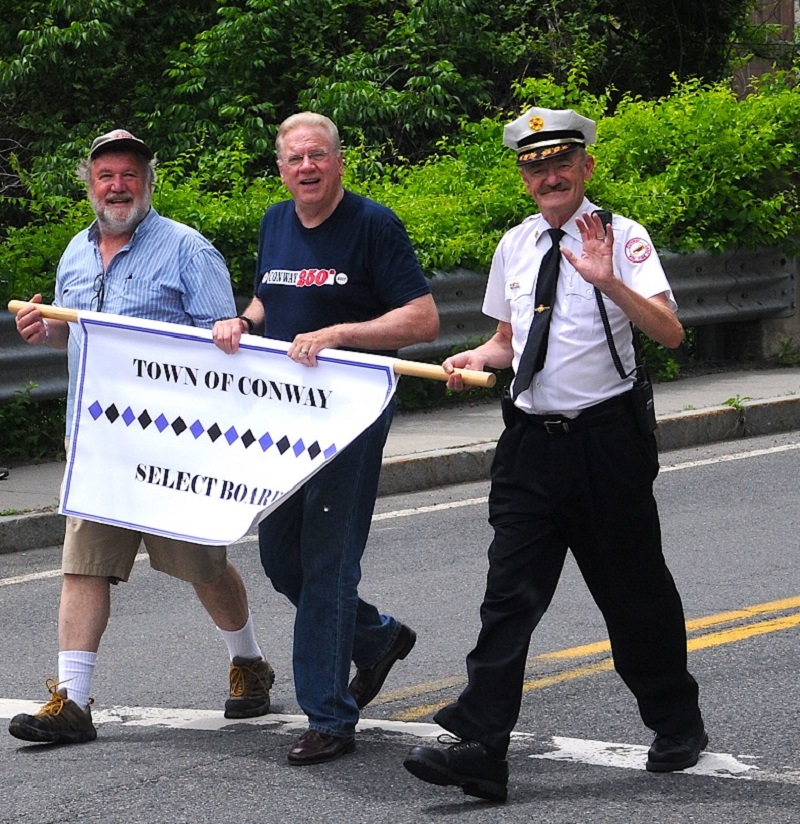 Armstrong, left, walks with fellow select board members in Conway's 250th anniversary parade . Photo courtesy of Bob Armstrong.