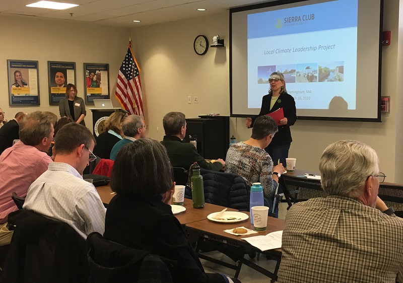 For the last two years the chapter used old-school outreach to identify and engage municipal officials from across the state who embrace the idea of 100% renewable energy, and who are willing to adopt local policies to support that goal. With this foundation in place, a series of five regional climate leadership summits was held over the past year, and on March 16 a culminating statewide summit took place at Framingham State University.