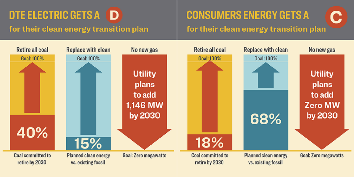 Consumers Energy is a step ahead of DTE and should be commended for its commitment to build 6,000 megawatts (MW) of solar, 450 MW of storage, retire a majority of their coal plants, and to aggressively invest in energy efficiency on its path to net zero by 2040. If Consumers retired their J.H. Campbell plant -- the last remaining coal plant in their fleet -- by 2030 and didn’t build a new fossil gas plant, it would bump them up from a C to an A and it would be one of the utilities leading the country on clean energy! Consumers Energy has an opportunity to lead on clean energy by moving up its transition off coal from 2040 to 2030 and ensuring a just transition for the workers and communities connected to the plants.