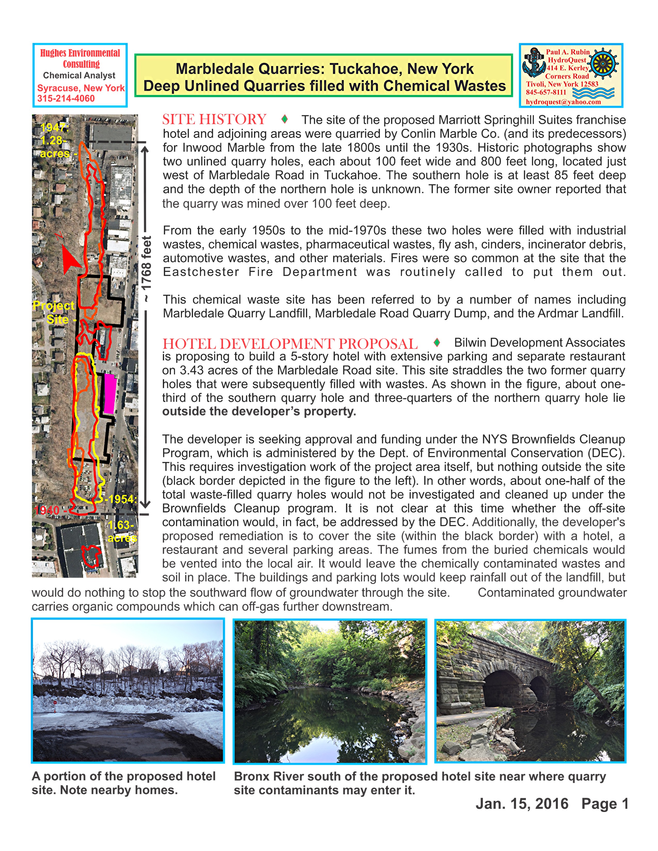 Independent Hydro-geological Evaluation of the Ground Water Flow through the Former Marble Quarry Landfill, 109 Marbledale Road, Tuckahoe, NY 3/01/2016