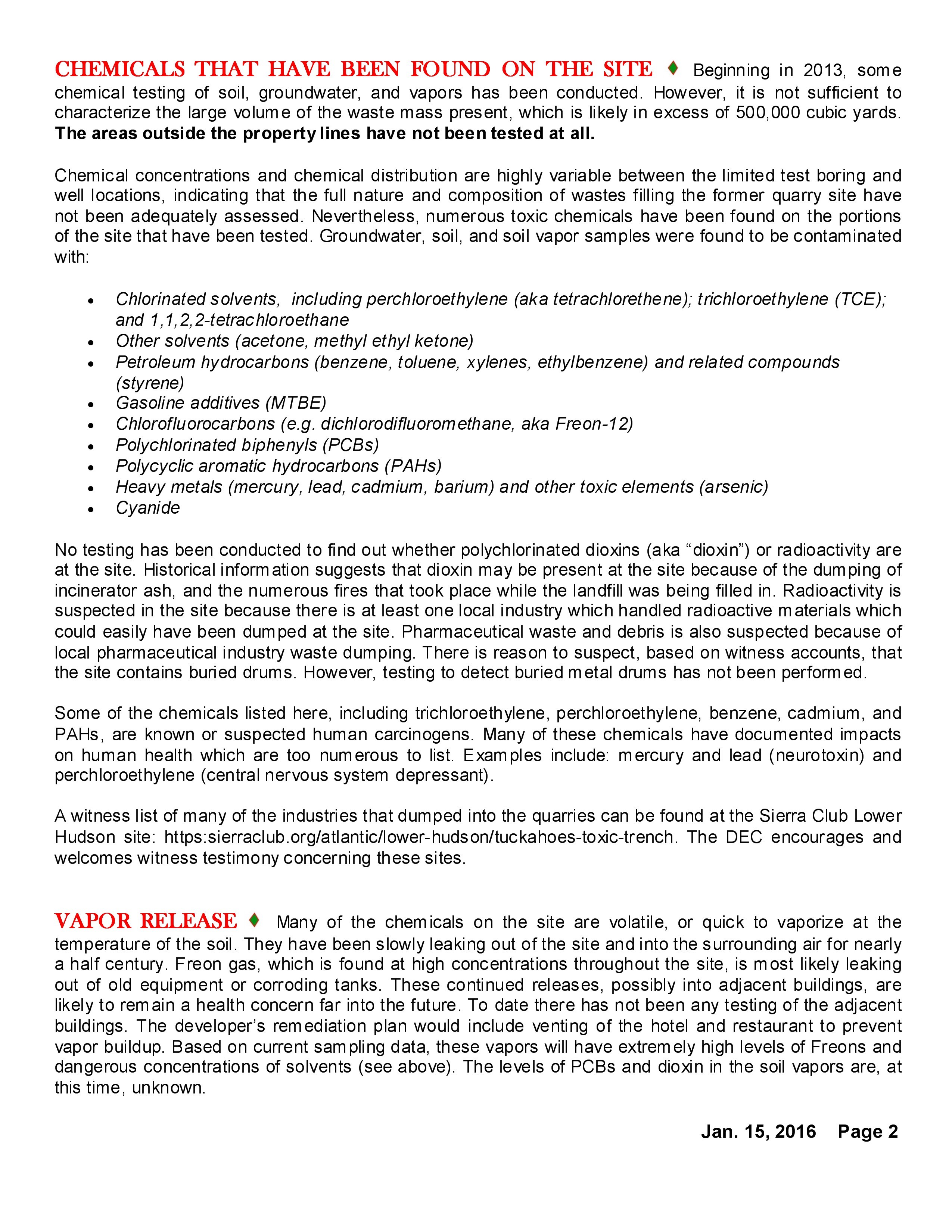 i) They are not detecting the hazardous chemical vapors. ii) They are not treating the hazardous chemical vapors. iii) They are not tenting the hazardous waste dump. iv) They are not tracking the toxic contaminants in the ground water. v) They are not tracking the toxic vapor release from the contaminated ground water. - Do not allow them to continue to placate you by telling you that this project and these activities are safe: