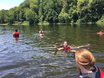 The Delaware River was slow-moving that day, which provided for lots of teamwork and entertainment. As we paddled down the river, songs of Row, Row, Row Your Boat could be heard. Of course, many of the students from other countries caught on to the lyrics and joined in too! Steering a raft with 5-7 people in it was a first for most students and proved challenging for some, with zig-zagging movements and spins around. But there was laughter all around and many students took turns steering, learning the skill as they went.