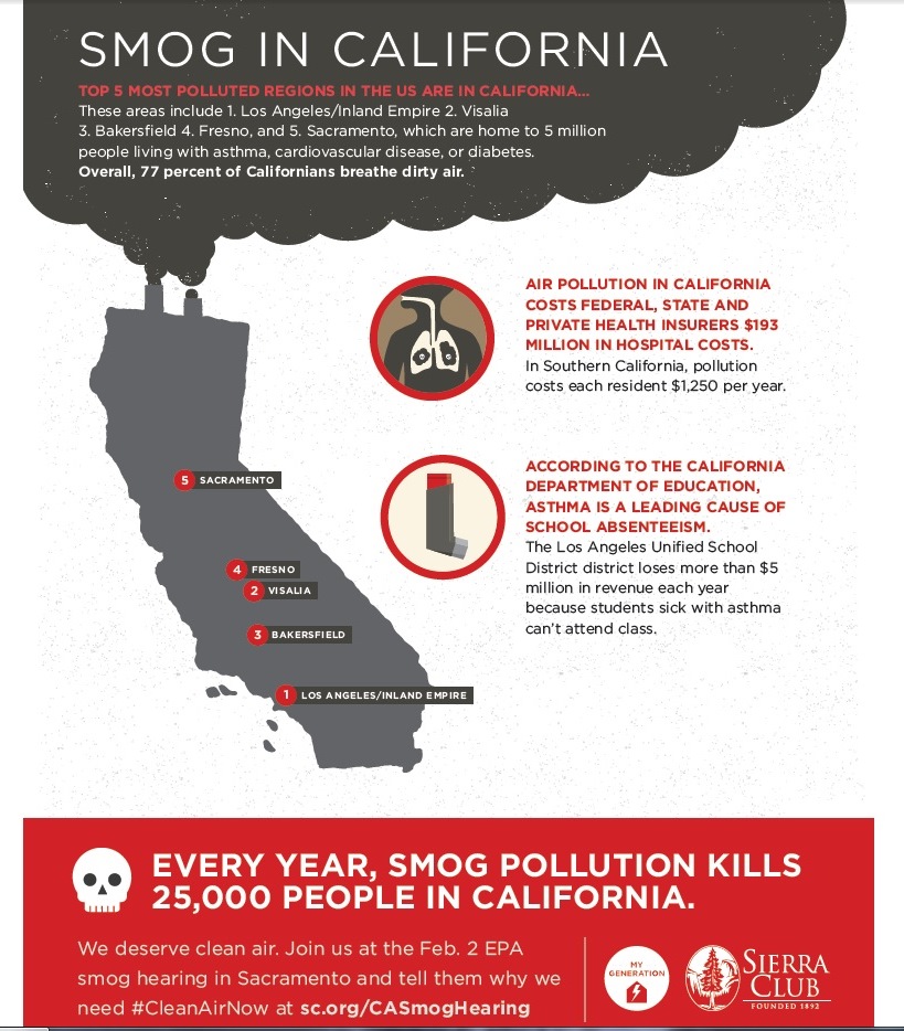 Today in Sacramento, California, is the last of the public hearing on the Environmental Protection Agency's proposed ozone (also known as smog) standards. People of all ages and backgrounds are gathering to speak out for a strong standard that will clean up the air. California is home to the five most dirtiest areas in the U.S. when it comes to air pollution - and today's testimony in Sacramento will include numerous residents from those cities.