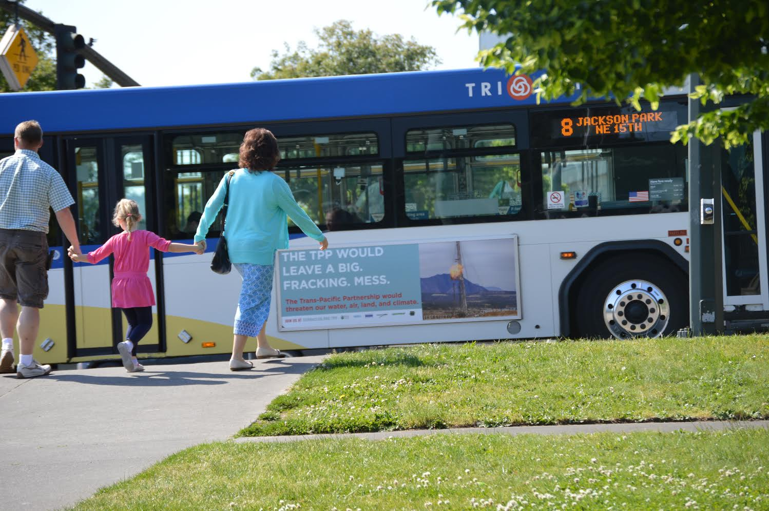 The ad blitz, which includes radio airtime in English and Spanish, online ads, billboards, and even ads on public transportation, focuses on just a few of the major threats of the TPP -- including that the TPP could increase fracking and threaten environmental protections because of corporate privileges in the deal. It exposes the complete and total lack of transparency of the ongoing negotiations of the TPP. Not only are talks going on behind closed doors, but every indication shows the TPP has the potential to wash away protections we rely on to clean up our air and water from pollution and other vital safeguards.