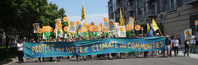 The March, like much of the movement against tar sands, was led by indigenous people from the Great Lakes region and from Alberta, Canada, both are places where tar sands extraction and transport threatens the health and safety of communities. From the contamination of sacred lands and waters and lack of consultation with tribal governing bodies to the long-term effects of climate change, the development and transportation of the tar sands violates indigenous treaty rights.