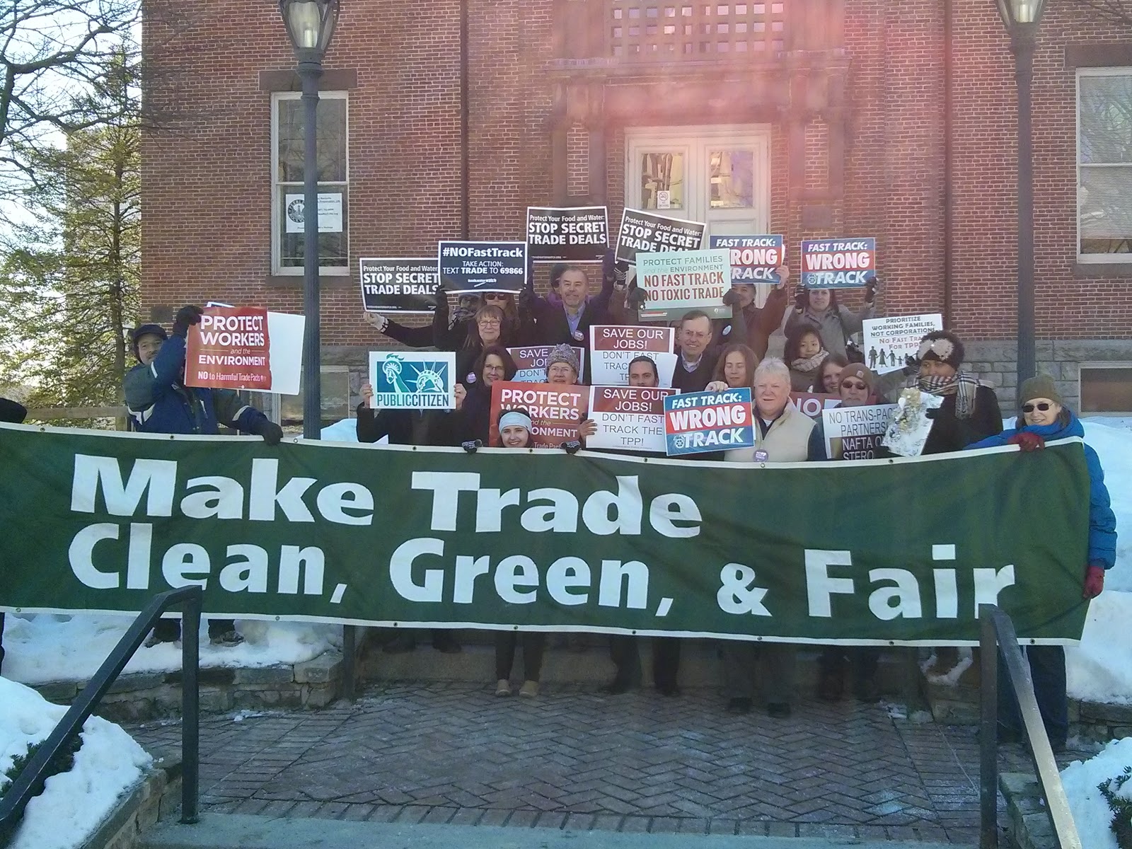 Trade and climate activists oppose TPP provisions that mandate the Department of Energy’s automatic approval of liquefied natural gas (LNG) exports to TPP countries. This policy would pave the way for more fracking and more climate-disrupting emissions. They also oppose “investor-state dispute settlement” (ISDS)--part of the Trans-Pacific Partnership that would empower corporations to sue governments in private tribunals over policies that they claim reduce their expected profits. Shocking investor-state cases in places like Quebec show that the fossil fuel industry uses ISDS to keep business as usual. Trade activists directly challenge these policies, and the damage that companies like Shell and ExxonMobil can bring to our climate, by fighting free trade agreements like the TPP.