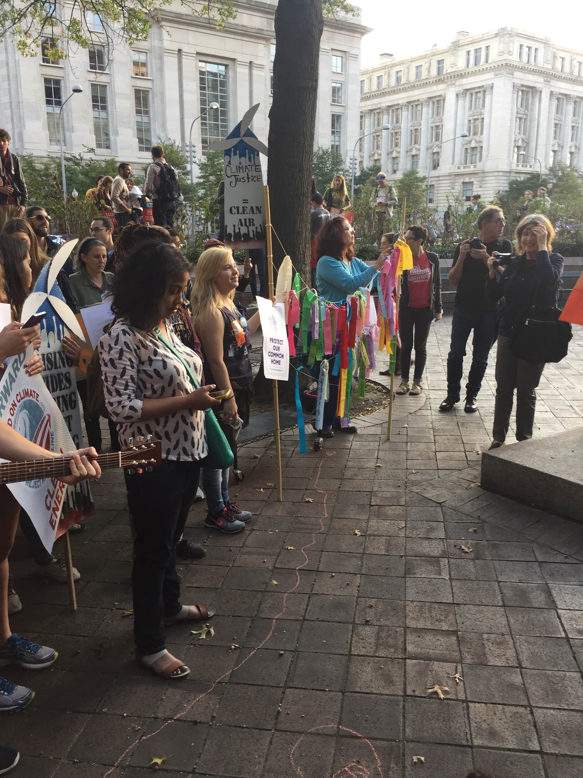 At DC’s Freedom Plaza, the rally took on a more uplifting tone, and included musical performances that stressed TPP’s threats and speeches from communities facing the realities of climate disruption. The event got the attention of the media, including international press coverage!