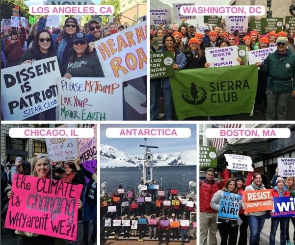 Sierra Club and climate activisits marching at Women's Marches across the country.