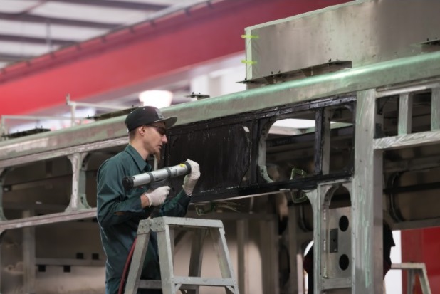 PHOTO: A worker at BYD’s Los Angeles County facility. The facility has hired 500 staff and is currently expanding as demand for electric buses increases. The company is also working with local union SMART to develop a contract. Good jobs, a clean environment, and a thriving business environment go hand in hand when the right policies are in place.