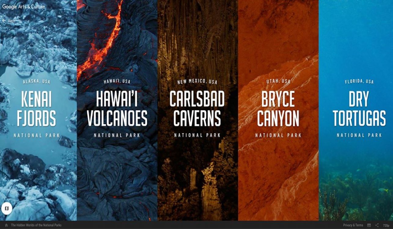Pero ahí mismo mi perro se aburrió y cambió el tubo de lava por el sofá. Verás, en realidad no estaba en el Parque Nacional de los Volcanes de Hawái. Estaba explorando “Los mundos ocultos de los parques nacionales”, una creación de Google Arts & Culture en inglés (pero lo visual no necesita idioma) que lleva a los espectadores a un viaje realista a través de cinco parques nacionales: los fiordos de Kenai, las cavernas de Carlsbad, Bryce Canyon, Dry Tortugas y, sí, los volcanes de Hawái . (Google Earth también te permite visitar 31 parques nacionales, pero es una experiencia más básica para el espectador).