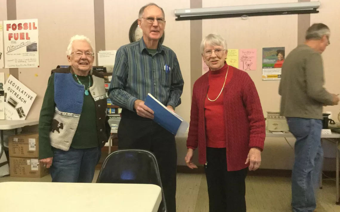 Jim Redmond honoring two conservation heroes, Doris Swanson (on left) and Rosie Keuhne (on right)