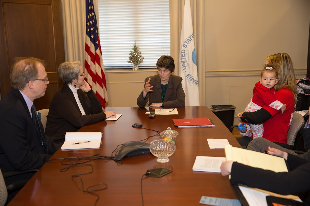 After the event outside, the coalition was able to personally deliver the support inside the EPA. Representatives of several groups met with Janet McCabe, Acting Assistant Administrator for the Office of Air and Radiation, to discuss the proposed rule and convey their support for EPA’s efforts to tackle methane emissions from oil and gas. In this meeting, Clean Water Action delivered thousands of handwritten letters thanking EPA for moving forward with regulating methane emissions.