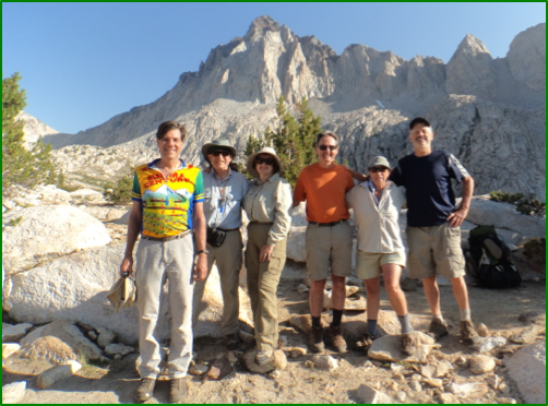 The 22nd annual Yokuts backpack trip began on a hot July 30th, as six stalwart hikers boarded the Lake Edison ferry to enjoy only cool moments of the day splashing their way across the lake to the Mono Creek trail head. This year’s crew included Elaine, Jerry, Sandy, Kent, Bob, and Randall.