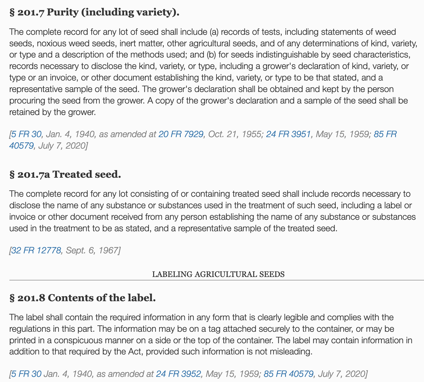 Treated seeds regulations, March 25, 2021