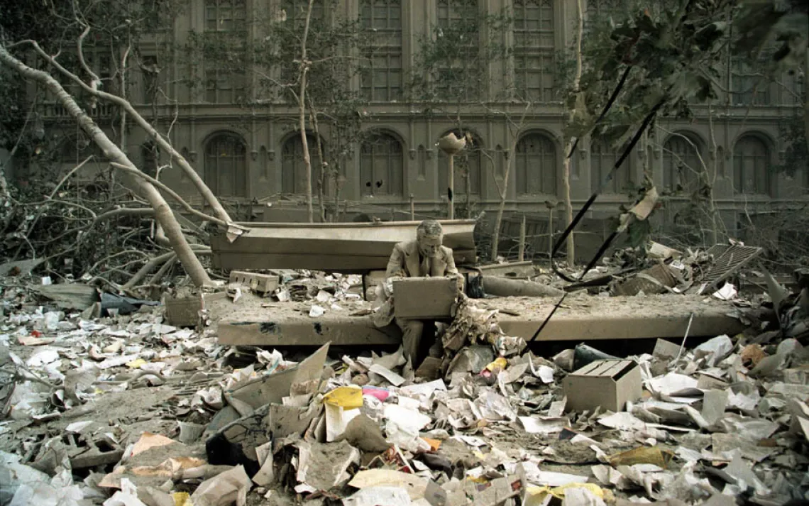 J. Seward’s sculpture in New Jersey, “Double Check”, was of a seated businessman reviewing the contents of his briefcase. The sculpture was in Liberty Park near the World Trade Center when the attacks of Sept. 11, 2001, left the area in ruins. Many other artworks in the buildings and outside were destroyed that day, but the man with the briefcase, though knocked off his perch, survived, covered in debris.