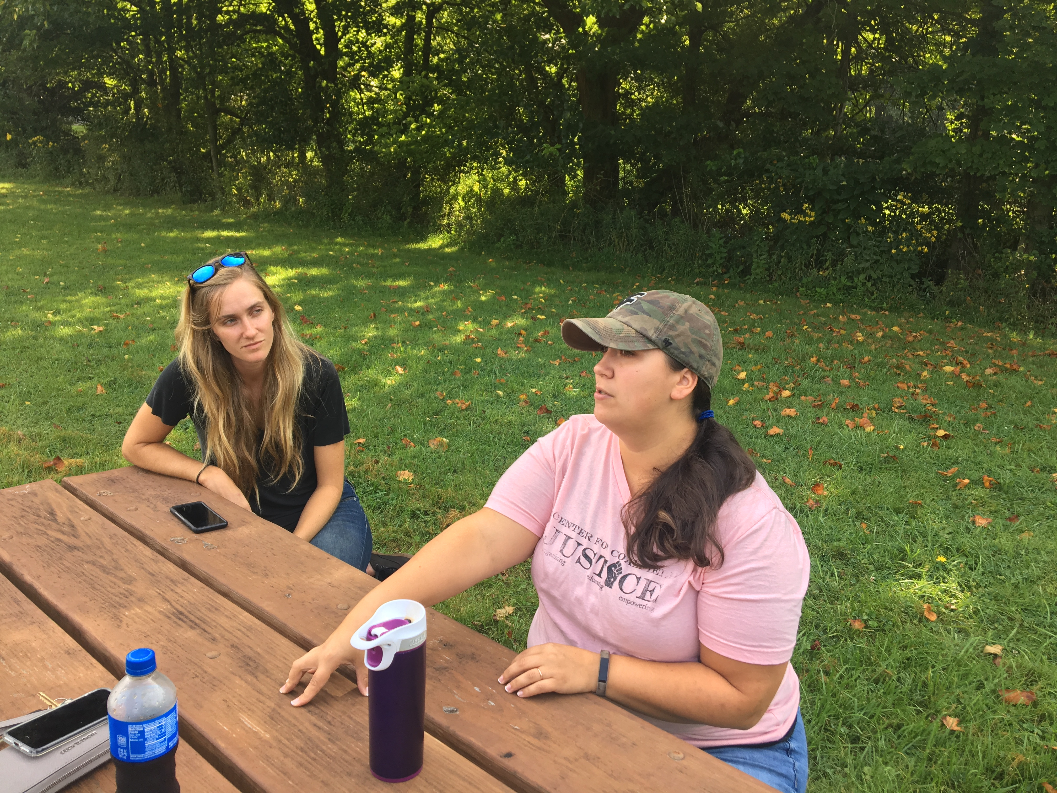 Chapter Equity Chair Robyn Weaver and Chapter Chair Veronica Coptis discussing the impacts of coal mining at Ryerson Station State Park in Greene County.