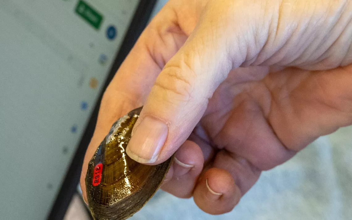A tagged mussel.