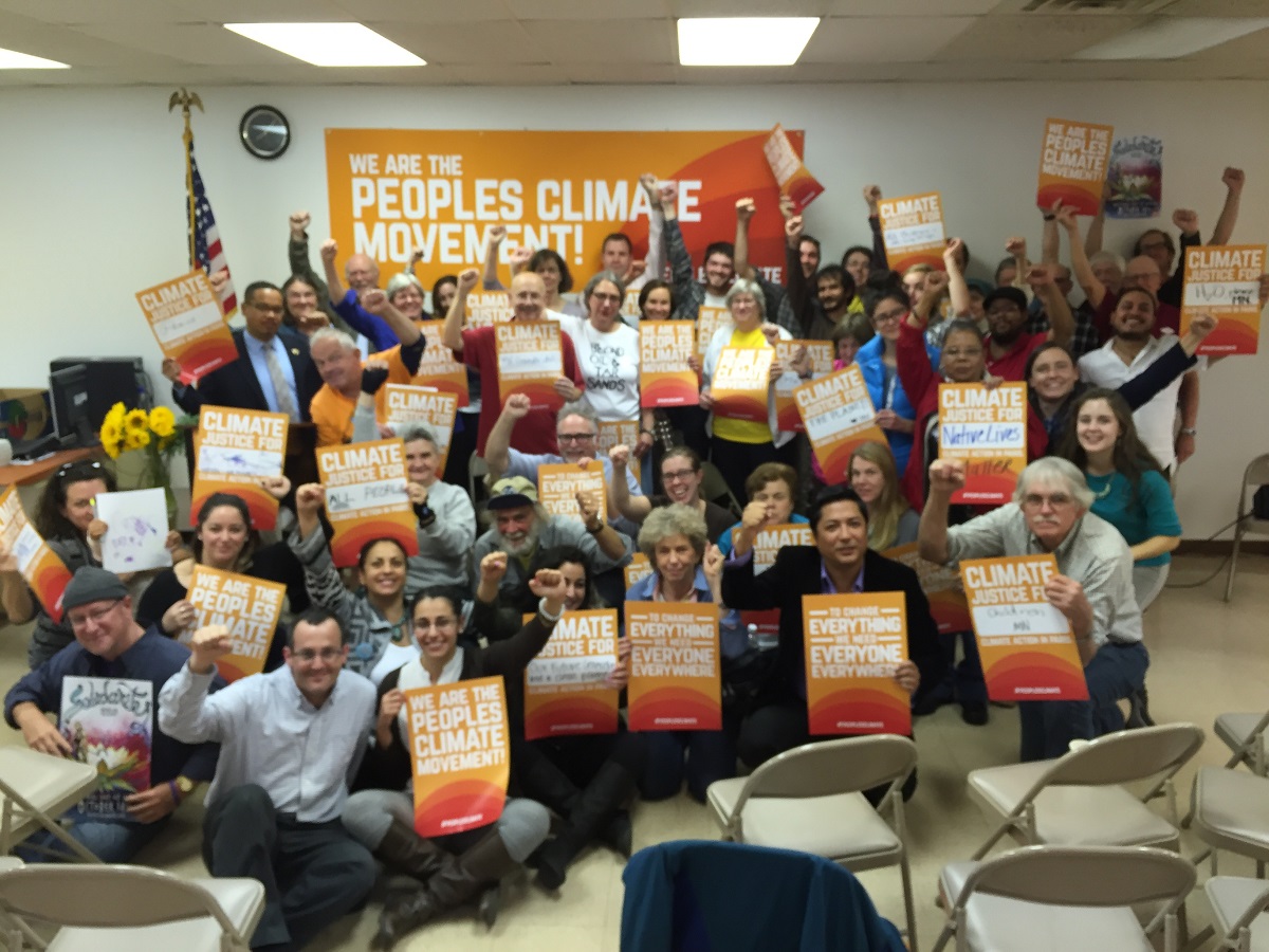 Among the People's Climate Movement events held around the country this month was a petition-signing event at a Communications Workers of America (CWA) union hall in Minneapolis, chosen to symbolize the potential for economic justice in the EPA's proposed Clean Power Plan (CPP). Fortuituosly, a group of local peace protestors was demonstrating nearby, so the Sierra Club and People's Climate Movement activists coordinated efforts with the protestors to act in solidarity in support of the Clean Power Plan.