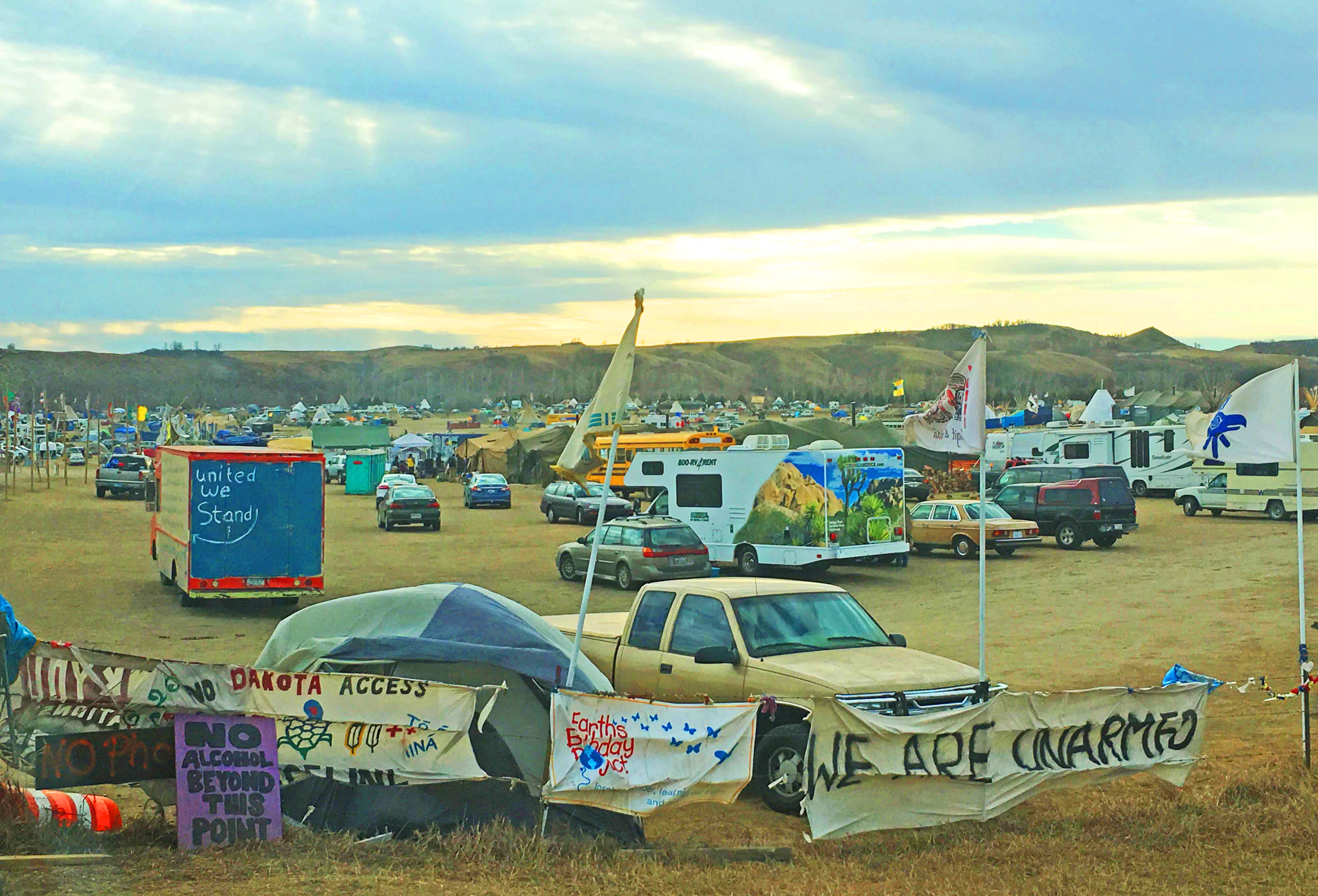 This follows Friday’s announcement by the U.S. Army Corps of Engineers that it plans to break up the Oceti Sakowin (Sioux for “Seven Council Fires”) camp by December 5. The Corps’ district commander said that anyone found on Corps-managed land north of the Cannonball River after that date will be considered trespassing and subject to prosecution.