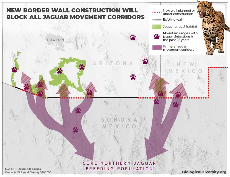 “These walls will destroy Arizona’s spectacular Sky Island mountains and be a death sentence for jaguars in the United States,” said Laiken Jordahl, borderlands campaigner with the Center for Biological Diversity. “The public has spoken loud and clear against Trump’s disastrous border wall. They’re demanding that Trump restore justice to the borderlands and stop ripping this beautiful region apart with his wall of hate.”