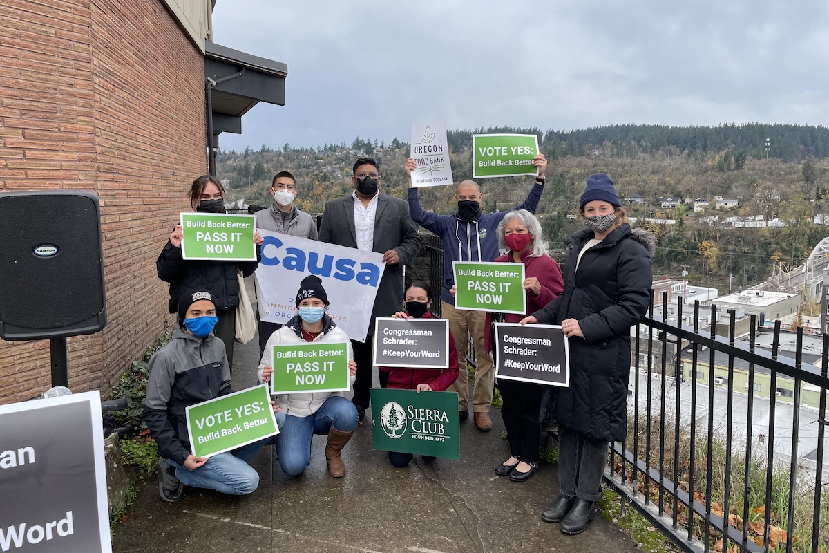 Oregon City, OR — This morning, local community and faith leaders joined together outside U.S. Representative Kurt Schrader’s Oregon City office to urge that he keep his commitment to vote “yes” on the Build Back Better Act. The U.S. House is expected to hold a vote within the next few days.
