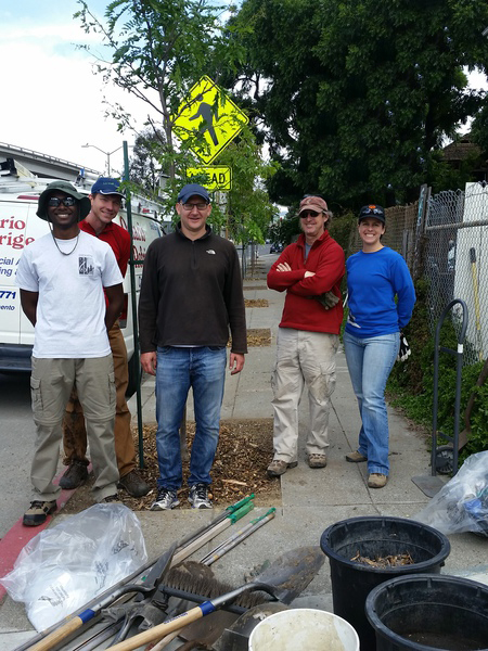 Photo: Oakland Tree Team volunteers after a May 2016 planting event. Photo by Kent Lewandowski.