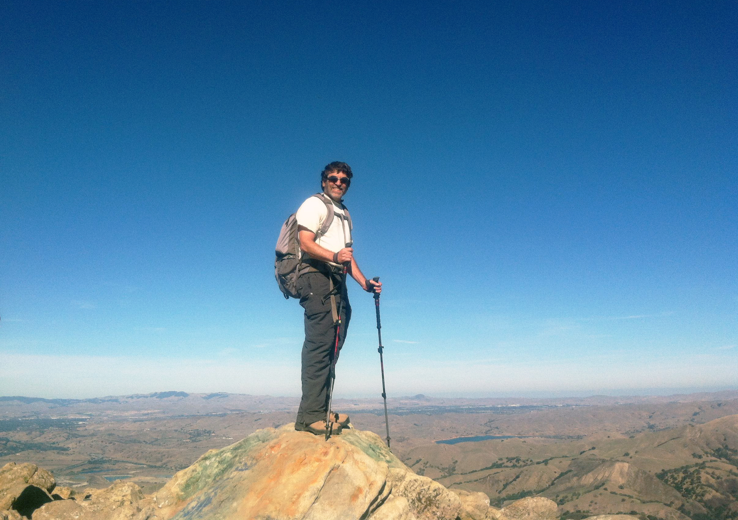 Photos: Top – Steve on a hike at Mission Peak Regional Preserve in November 2012, courtesy Lee-Hwa Wang via Meetup; Middle – Steve (far right) on a Tomales bluff hike in April 2013, via Meetup; Bottom – Steve (center, in red) at Eagle Peak in Mount Diablo State Park in 2011, courtesy Steve Bakaley.