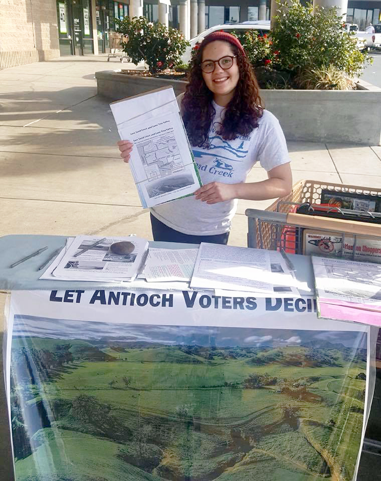 If you can put in a couple hours on a weekend or two in April or May, everyone in the campaign will sincerely value your help. All that’s required is that you be 18 years or older. We’ll pair you with a veteran collector if you’ve never done this before, and you'll be stationed in a popular place like the entrance to Black Diamond Mines Regional Preserve (where you can take a hike before or after your shift). People are friendly and usually willing to sign if they’re Antioch voters. They don’t want more development to despoil natural lands, and Antioch residents especially don’t want the additional traffic that massive sprawling development brings.