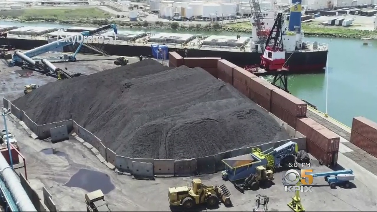 Photo: Coal stacked at the Levin Richmond Terminal, courtesy CBS San Francisco