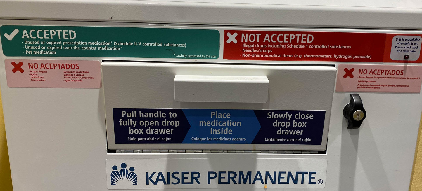 - Below are photos of the recycling bin at the Kaiser Pharmacutical area in Murrieta, CA.