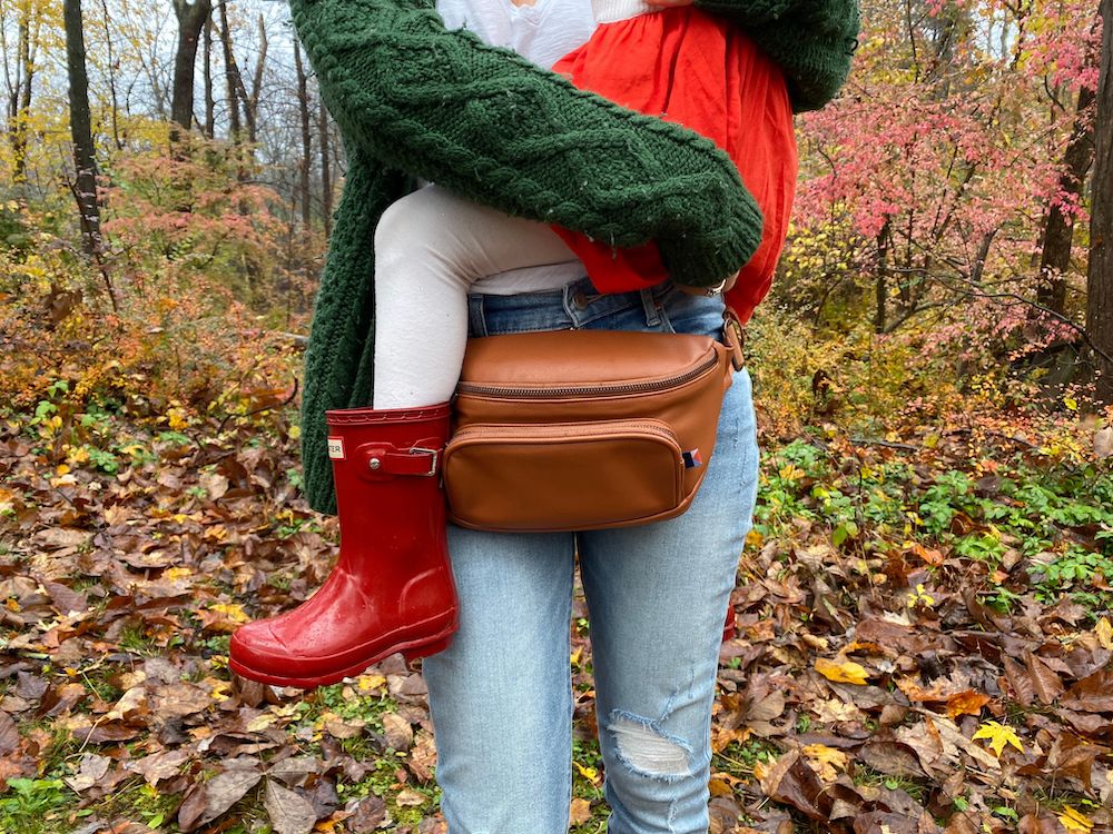 Designed to be worn as a fanny pack, the very fashionable vegan leather Kibou ($89) is short for the phrase “Keep It By You” and was created with busy parents in mind. Its stain-resistant nylon lining can be easily wiped down and disinfected, and the piece boasts a built-in detachable changing pad and waterproof pocket (perfect for wipes), as well as interior slots for credit cards, keys, and pacifiers. Plus, the Kibou comes packaged in a reusable bag, and proceeds from its sale benefit Hour Children, which serves mothers and children impacted by incarceration.