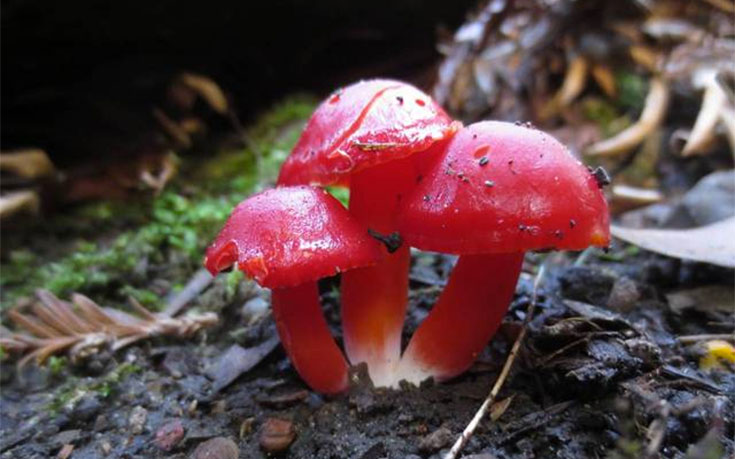 This elusive, shiny, and brightly colored mushroom is one of the most vividly striking of the hygrocybe, a genus of special interest among mycologists. Much of the ecology and biology is still being researched, but waxcaps are unique in that they sprout in areas with low-fertilization rates. Little is known of these mushrooms because of the difficulty of experimenting and growing them in a laboratory. Often bright red or bright yellow, they are found in waxcap grasslands throughout Europe.