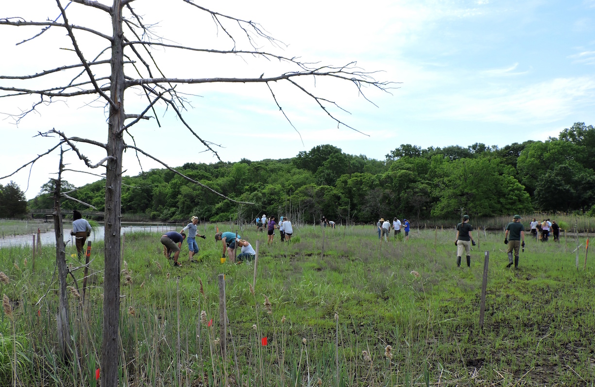 At 10 o’clock on a Saturday morning in June, four dozen volunteers rolled into a 120-acre tidal salt marsh at Sunken Meadow State Park on eastern Long Island. In preparation for putting 2,000 plants in the ground, they all wore rubber boots, some up to their knees.