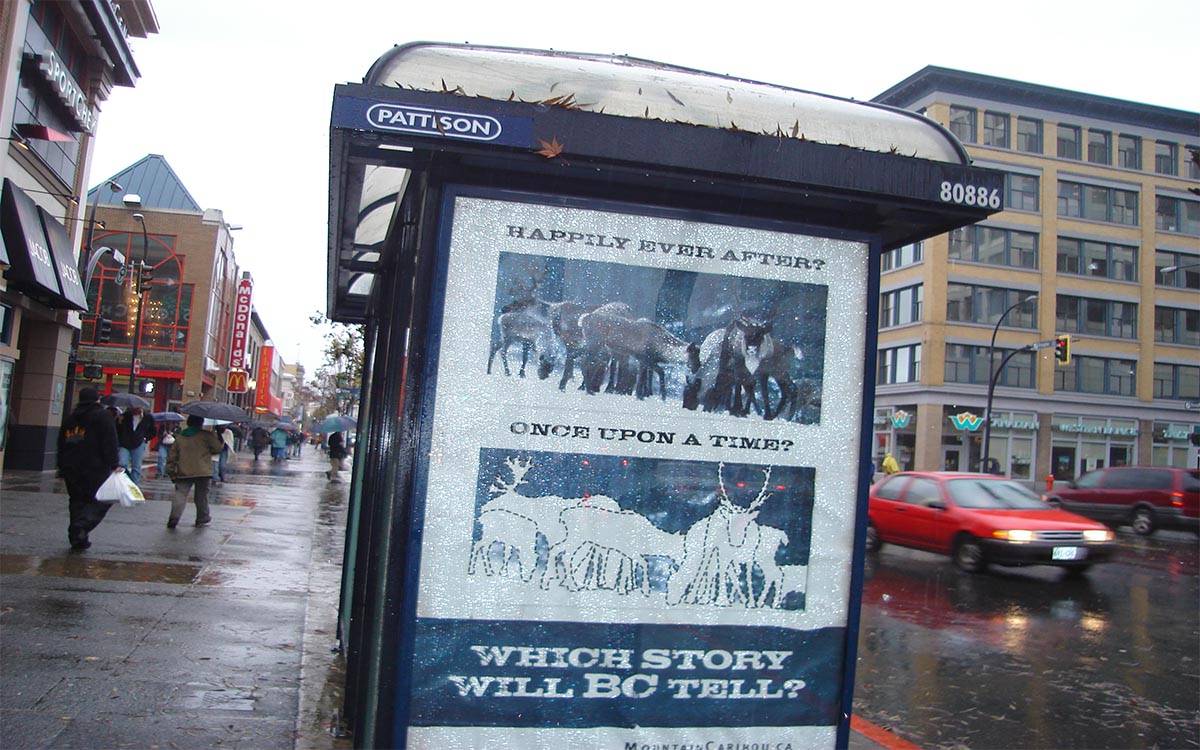 The Mountain Caribou Project tried many approaches to encourage BC to protect caribou habitat over the years, including this bus stop campaign in Victoria in the late 2000s.