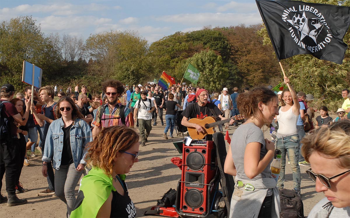 The very next day, on October 6, 50,000 people from across Germany and neighboring countries gathered in an adjacent field to demonstrate and celebrate the court decision. Jubilant speakers spoke about the dawn of a new mass environmental movement. Undisturbed by police, activists began building new treehouses and barricades.