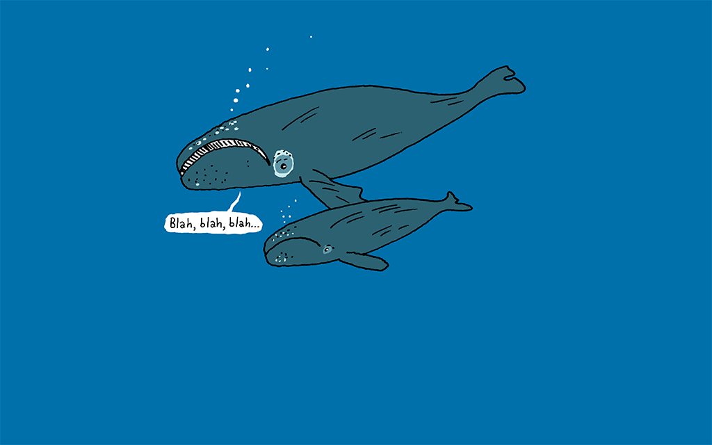 Female Atlantic right whales lower their voices to a whisper when communicating with their young to prevent “eavesdropping” by predators.