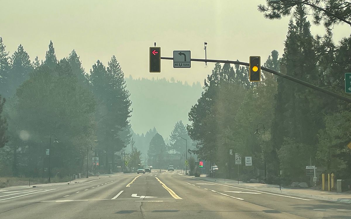 And then a community advocate would get up with an easel and a rendering on poster board of what Highways 267, 89, or 50 would look like if there happened to be a big wildfire on the Fourth of July weekend when occupancy was much higher. I saw that same image during at least three different meetings, but it would have been burned into my brain after one view. Because it was terrifying. It was a parking lot of cars trapped on a narrow road with fire lashing both sides—not all that different from the smoke-choked traffic jams that did in fact happen on Highway 50 just this past week.
